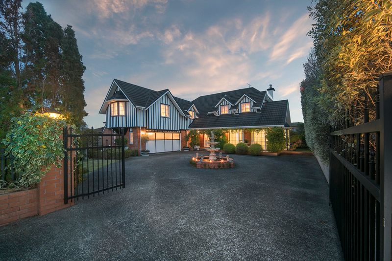3 full bathrooms, and a large separate laundry. Attention to detail is impeccable too with the high stud lounge, Crystal chandeliers, upper and lower decks, conservatory, Jetmaster fire, central vac system, and its very own full turning circle courtyard drive with a feature fountain!
